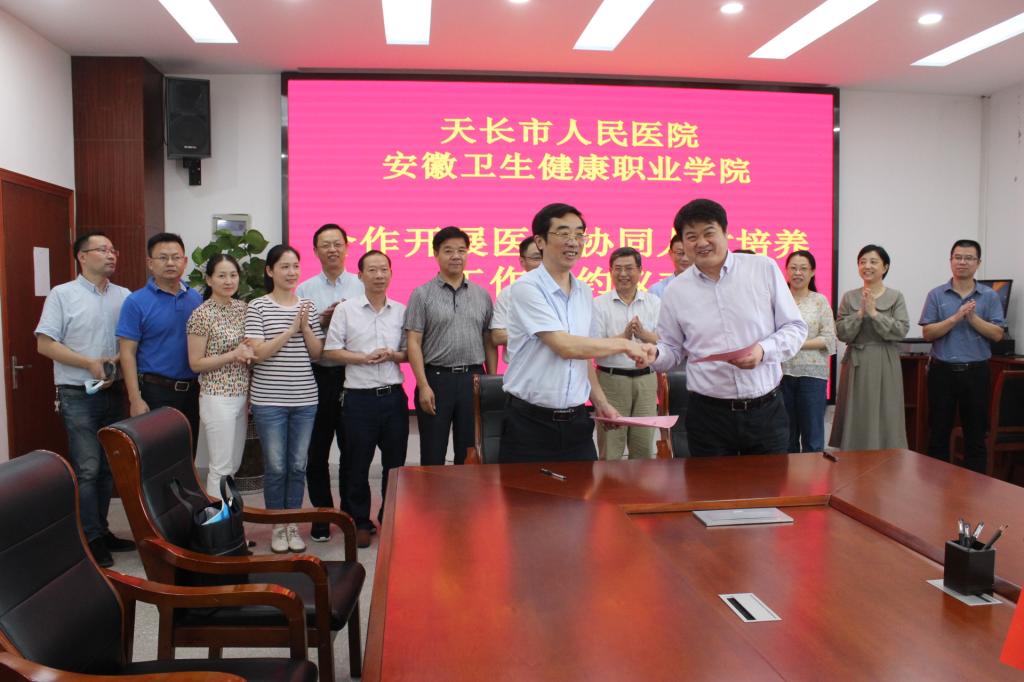为促进资源优势互补,探索创新理论和实践教学融合并进的人才培养模式,提升学院教育教学质量和医院的社会服务功能。9月15日,天长市人民医院党委书记许长松一行来我院洽谈医教协同人才培养相关事宜。党委书记谢瑞瑾主持签约仪式,院长张兵、党委委员王叙德出席签约仪式,双方相关部门负责人参加会议。